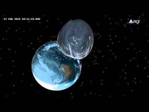 A simulação acima foi realizada pela AGI, uma empresa que desenvolve sistemas de análises gráficas. Com o software de simulação espacial foi possível criar essa simulação da proximidade assustadora do asteróide. Bem, os cientistas estão tranquilos como sempre, os cálculos mostram que a ameaça é praticamente nula. Na maioria das vezes quando ouço esse tipo de previsão, que confio muito, é como se pela trajetória de uma flecha o estudioso dissesse que a maçã será o alvo e não a minha cabeça. Você sabe que só vai passar raspando mas o gelo na barriga é sempre grande. Ainda mais após o meteorito da Rússia que ocorreu ainda hoje, vemos o quanto ameaças como essa são uma realidade.